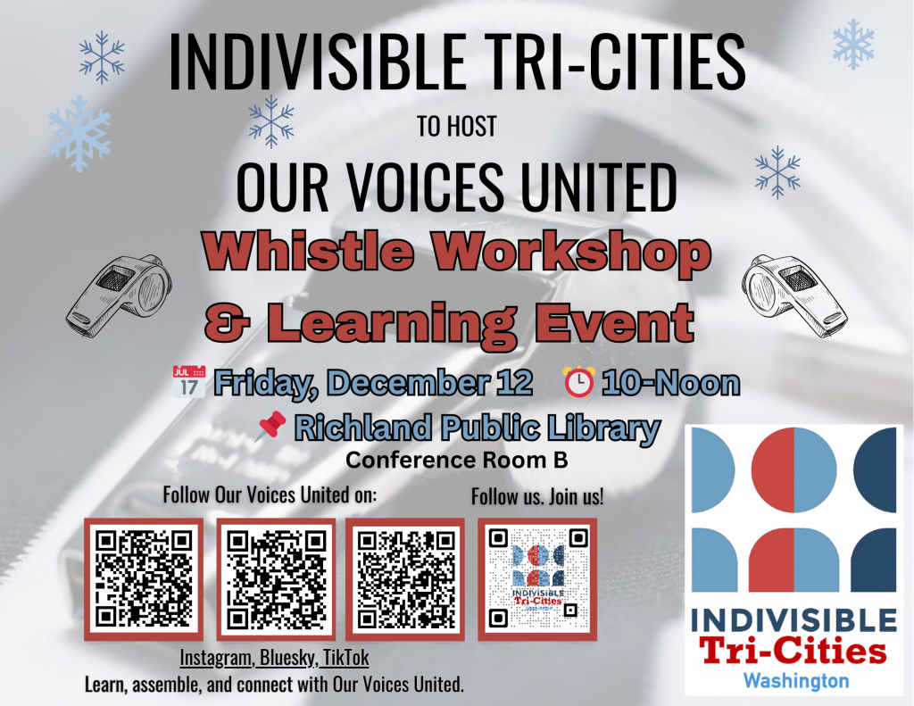 Our Voices United is sharing Whistle Safety Packs as a simple but powerful grassroots tool that helps communities stay alert and protect one another. 📢💪 Indivisible Tri Cities is joining in to help promote this campaign and support local outreach. 🤝❤️