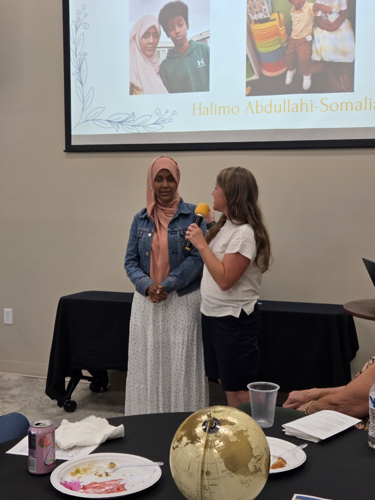 Shmala, another student from Afghanistan, was able to tell her story in her own words. Though the advances she’s made speaking English were clear, what she focused on was the importance of the welcome and hope she found at B5 when she was a lonely newcomer.