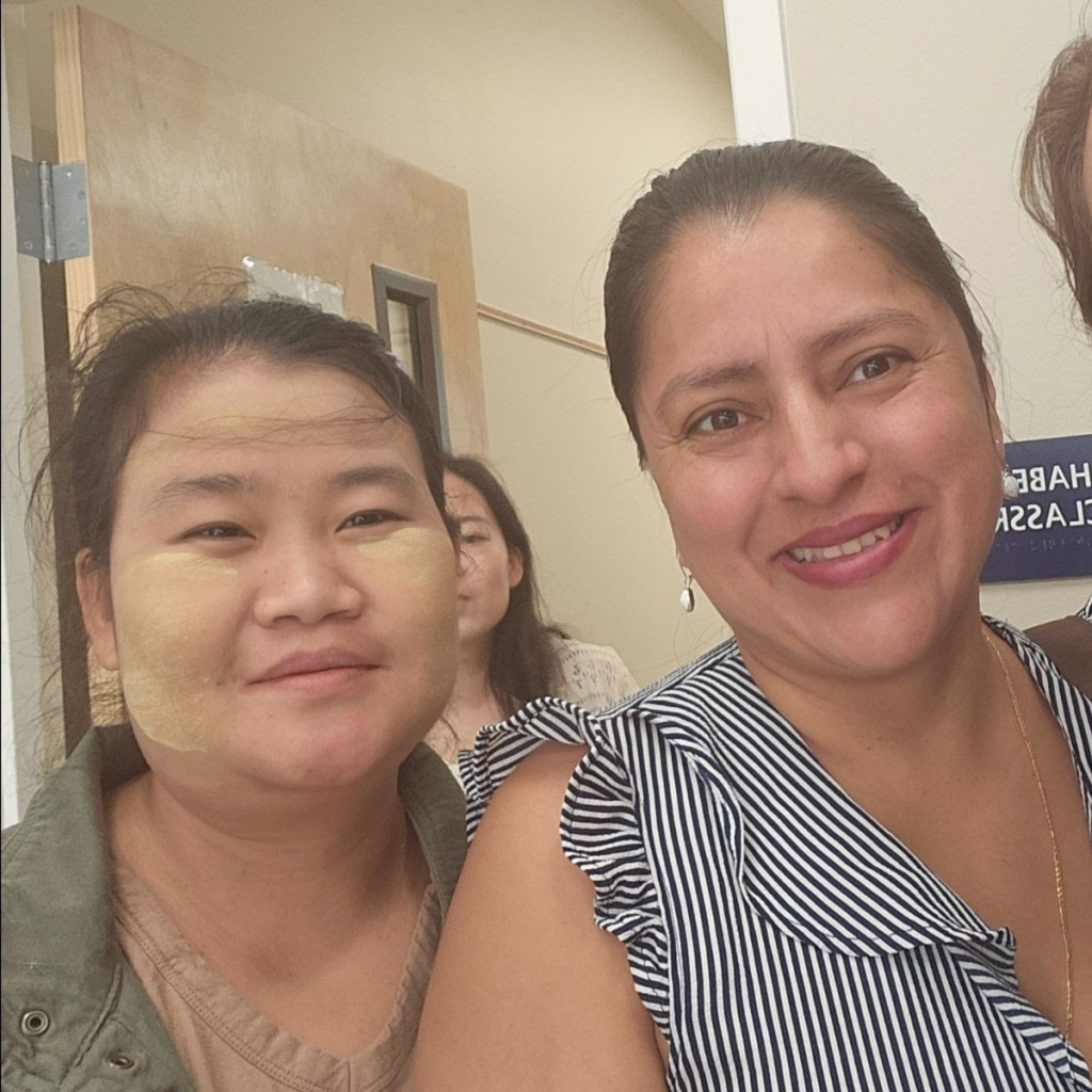 Celina was born in Colombia. She came to America with her three sons and one daughter. Together, the women are dedicated students who work hard to improve their English. During breaks, they can often be seen chatting as they walk arm in arm or sit together discussing their daily lives. Since they don’t share a common native language, all their communication is in English. Recently, during a speaking exercise, when Hser Ku Moo was asked, “Who is your best friend?” she immediately replied, “Celina is my best friend!” It’s wonderful to witness their excitement when they see each other and to watch their friendship grow.