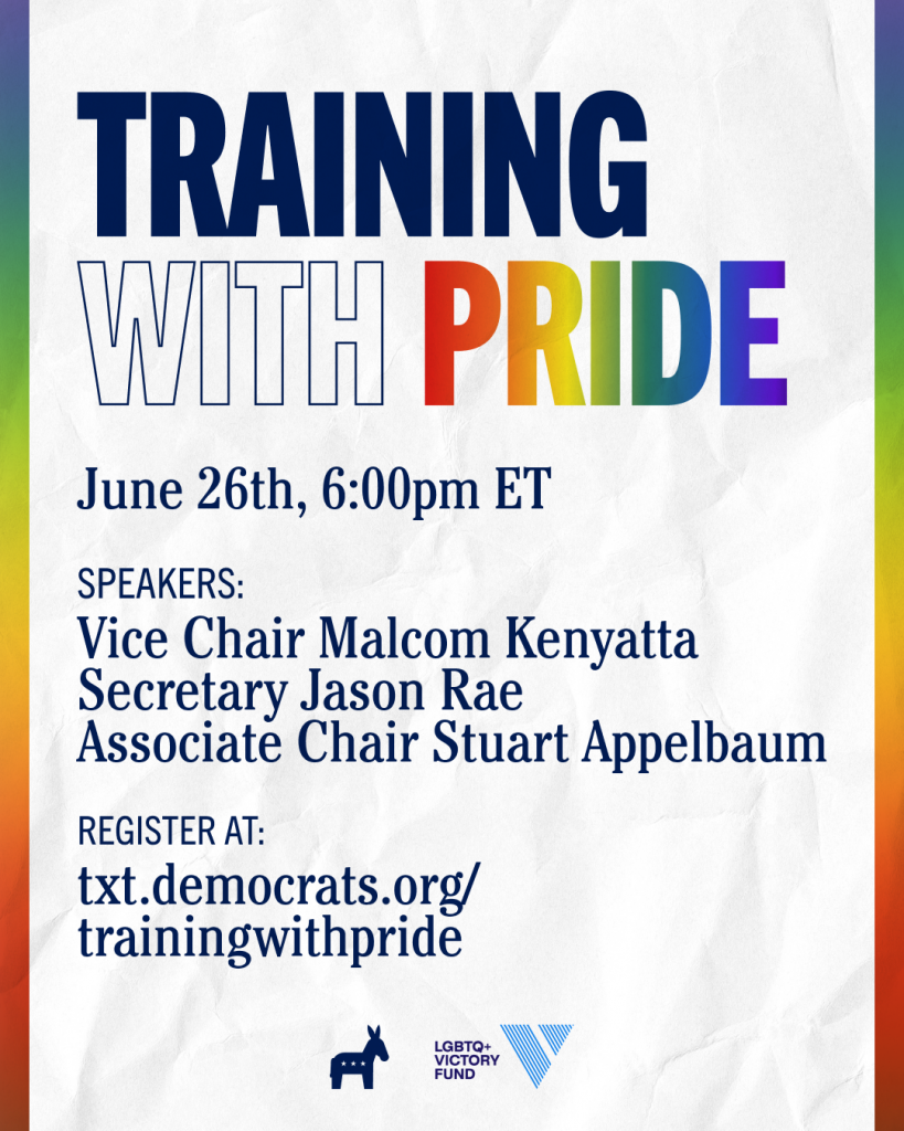 Come celebrate Pride Month with the DNC and LGBTQ+ Victory Fund by joining our Pride Month Virtual Training on Thursday, June 26th at 6 p.m. ET.