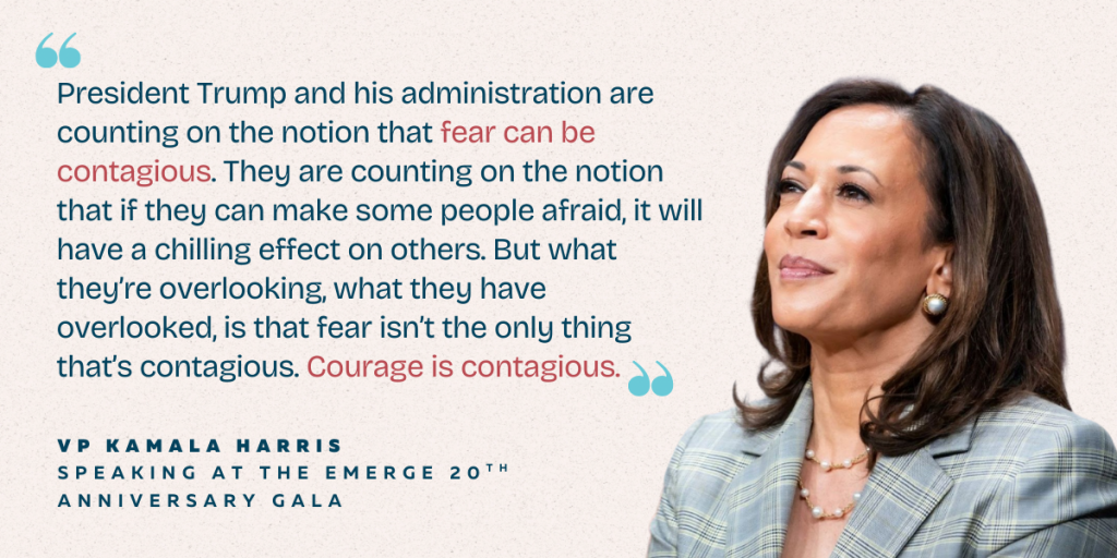 At the Emerge 20th Anniversary Gala last week, keynote speaker VP Kamala Harris delivered a powerful reminder: in the face of fear comes courage.