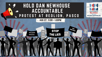 On Wednesday, August 27 (11:00AM to 1:00PM), while Rep. Dan Newhouse speaks at the Red Lion in Pasco, we’ll be outside holding a peaceful protest to hold him accountable.