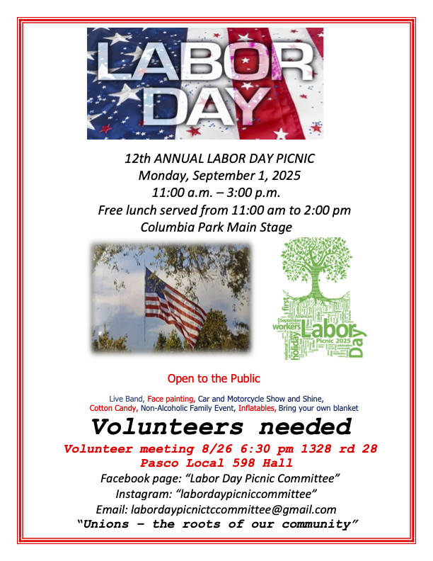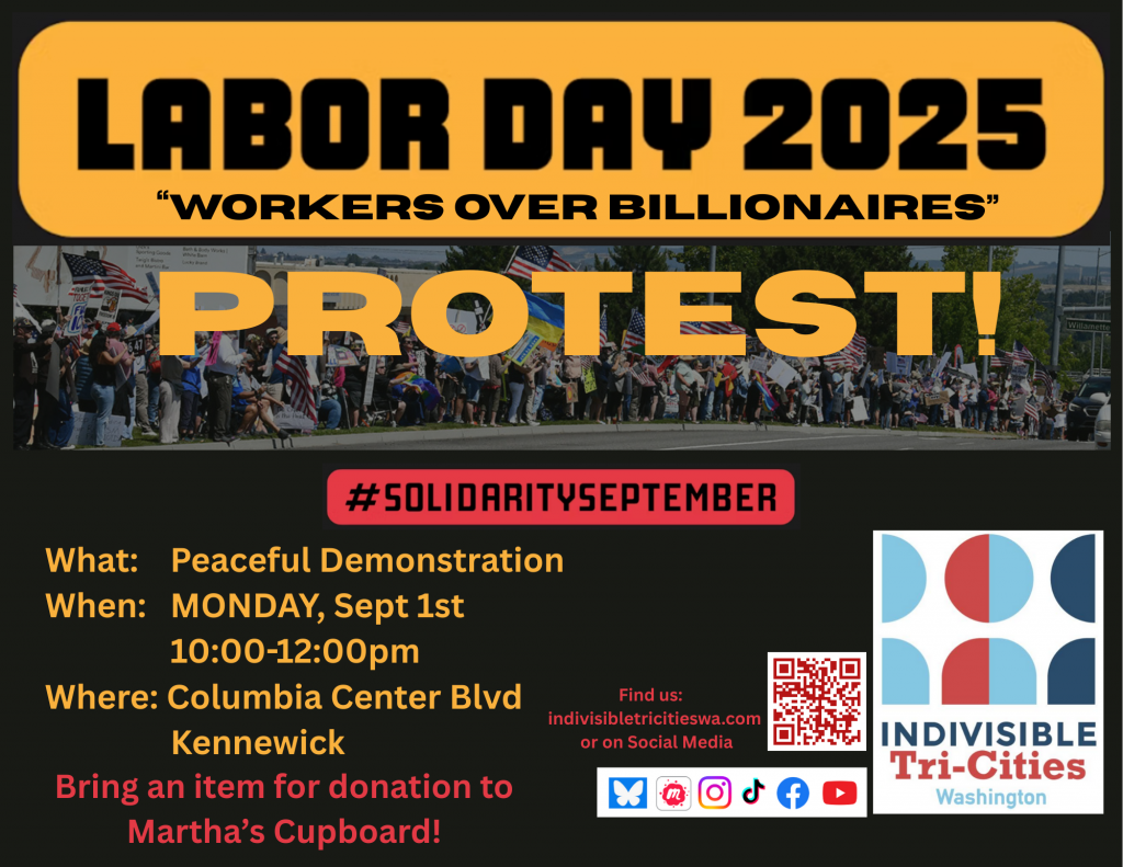 "Protest Tuesday" at John Dam Plaza on GWay in Richland from 3:45pm to 5:45PM. Bring your own sign or flag or one will be provided. Join our stalwarts and protest whatever is bothering you most that day.