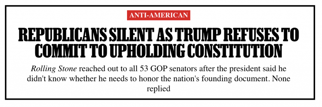 Let’s be clear: if Barack Obama or Joe Biden ever said that, the GOP would be calling for their impeachment within the hour. But Trump says it? And every single Republican senator stays silent.