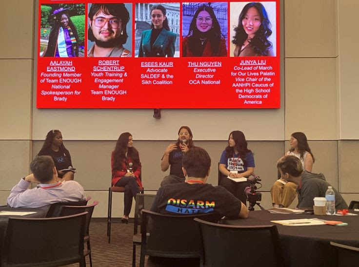 At the convening, I (Junya) had the chance to speak on a panel titled “Generation Lockdown: Growing Up American, Surrounded by Guns.” I talked about what it means to come of age in a country where gun violence — from school shootings to hate-fueled attacks — isn’t just a fear, but a formative part of our identity.