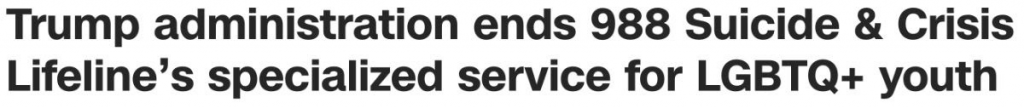 The Trump administration just terminated the specialized LGBTQ+ youth support line through the 988 Suicide & Crisis Lifeline.