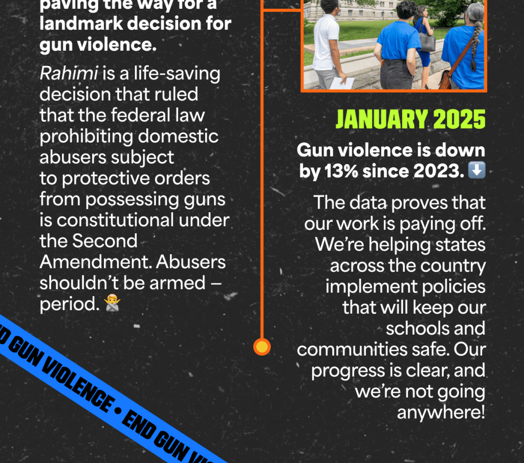 We know it can be hard to feel hopeful right now, but we’ve made huge amounts of progress (and a lot of it was during the last Trump administration!!!). Help us protect our progress and fight to push our country further towards a future free from gun violence by donating anything you can now!