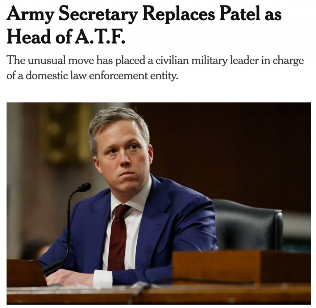 He quietly removed the acting director of the Bureau of Alcohol, Tobacco, Firearms and Explosives (ATF) — and replaced him with the Army Secretary, who’s now expected to do both jobs.