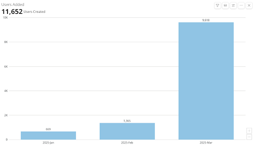 Take MoveOn’s Action Community Training (ACT) program, which we launched early this year to provide resources to MoveOn members who are interested in organizing in their local communities. In the last month, the number of new organizers joining the program exploded. Take a look at the massive jump in people joining in March: