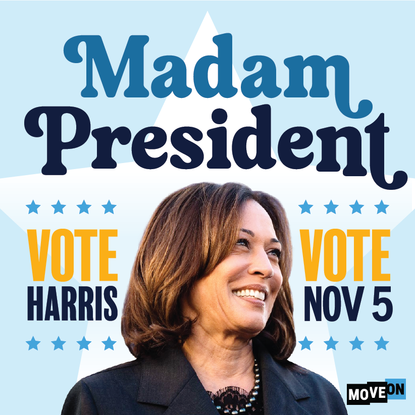 MoveOn members have resoundingly endorsed Vice President Harris with over 87% support—one of the most definitive endorsements in MoveOn’s history—and now it’s time to pull out all the stops to send her to the White House!