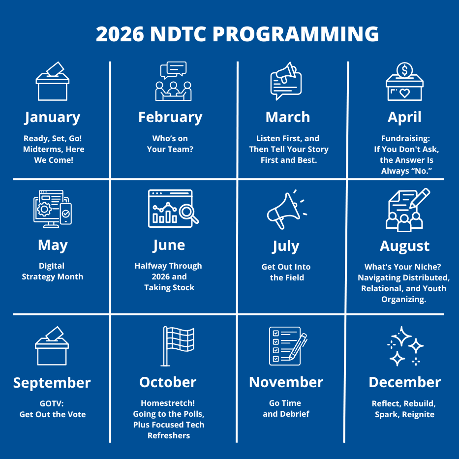 As we close out 2025, we’re proud of everything we’ve accomplished together. This year, we trained over 1,440 candidates and celebrated 965+ wins across the country. NDTC-trained candidates like Stacey Annie Carroll (State House, VA-64), Theresa Gillespie Isom (State Senate MS-2), and Mindy O’Neall (Mayor, Fairbanks, AK) flipped seats while Aftyn Behn made Republicans fight for every vote in her Tennessee state senate race. Now, we’re channeling that momentum into 2026. Here’s what’s coming your way from NDTC!