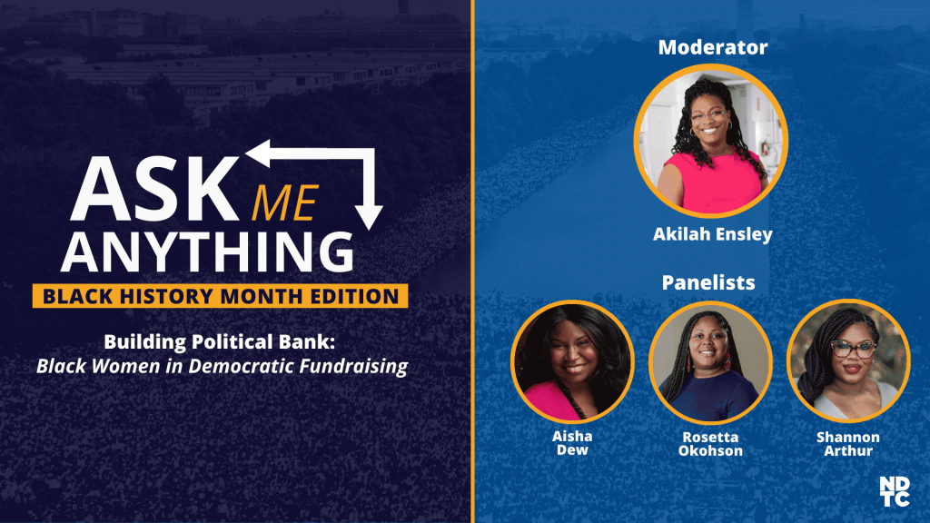 After signing up for the bootcamp, Check out our February 2025 panel, Building Political Bank: Black Women in Democratic Fundraising. NDTC was proud to feature Representative Aisha Dew, Shannon Arthur, and Rosetta Okohson-Reb.