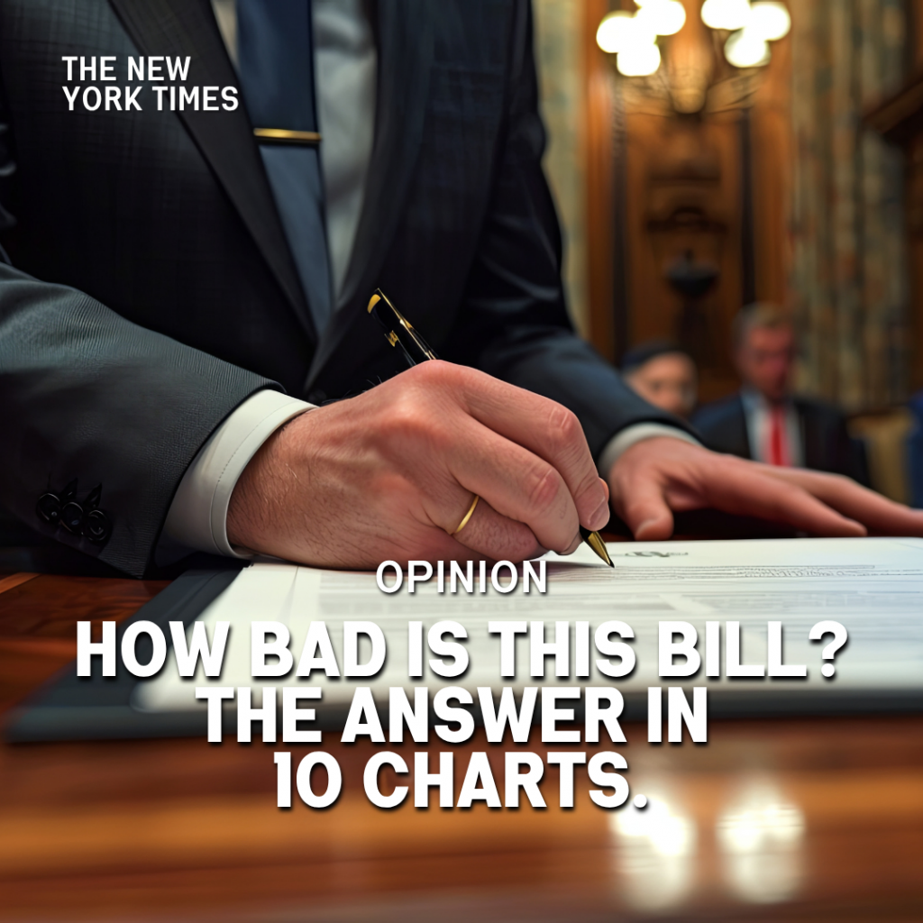Weeding through Trump’s Big Ugly Bill and its implications is overwhelmingly messy. No surprises here: millions will lose coverage on Medicaid, food stamps will be cut, the wealthiest will benefit most – and still, it’ll add $3 trillion to our deficit.