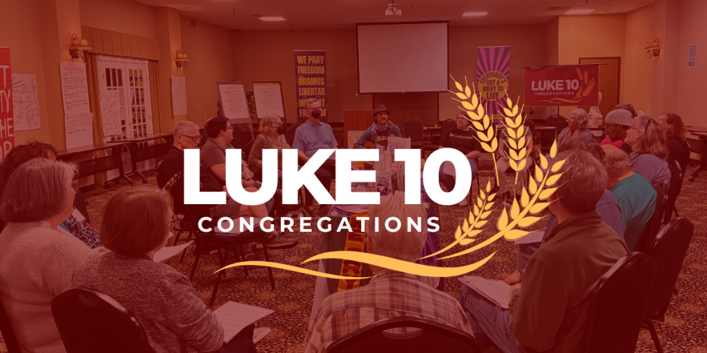 Luke 10 Congregations is a 9-month-long program to train congregations to fight Christian nationalism and show up for justice. As a part of a national cohort, congregations will study together to deepen their understanding of Christian nationalism’s relationship to poverty and racism, and then develop plans for how to faithfully respond in their own communities. The second Luke 10 Congregations cohort concludes soon, and the deadline to apply for the third cohort is June 1, 2026.