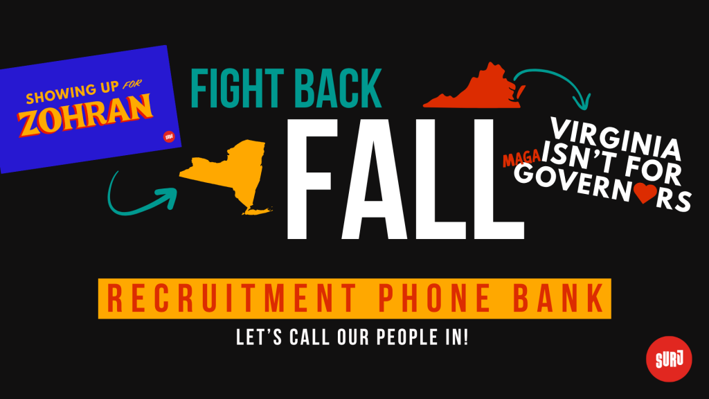“At first the voter I spoke with was opposed to Zohran because she felt no one should get anything for free, but as we talked about her grandchildren and how important it was for her kids to be able to afford to stay in New York to raise her grandchildren, she started to consider how free childcare might help them. She promised to consider Zohran and look up what he stands for and share the information with her adult kids.” –Flora, national SURJ phonebanker sharing about a conversation with a potential voter