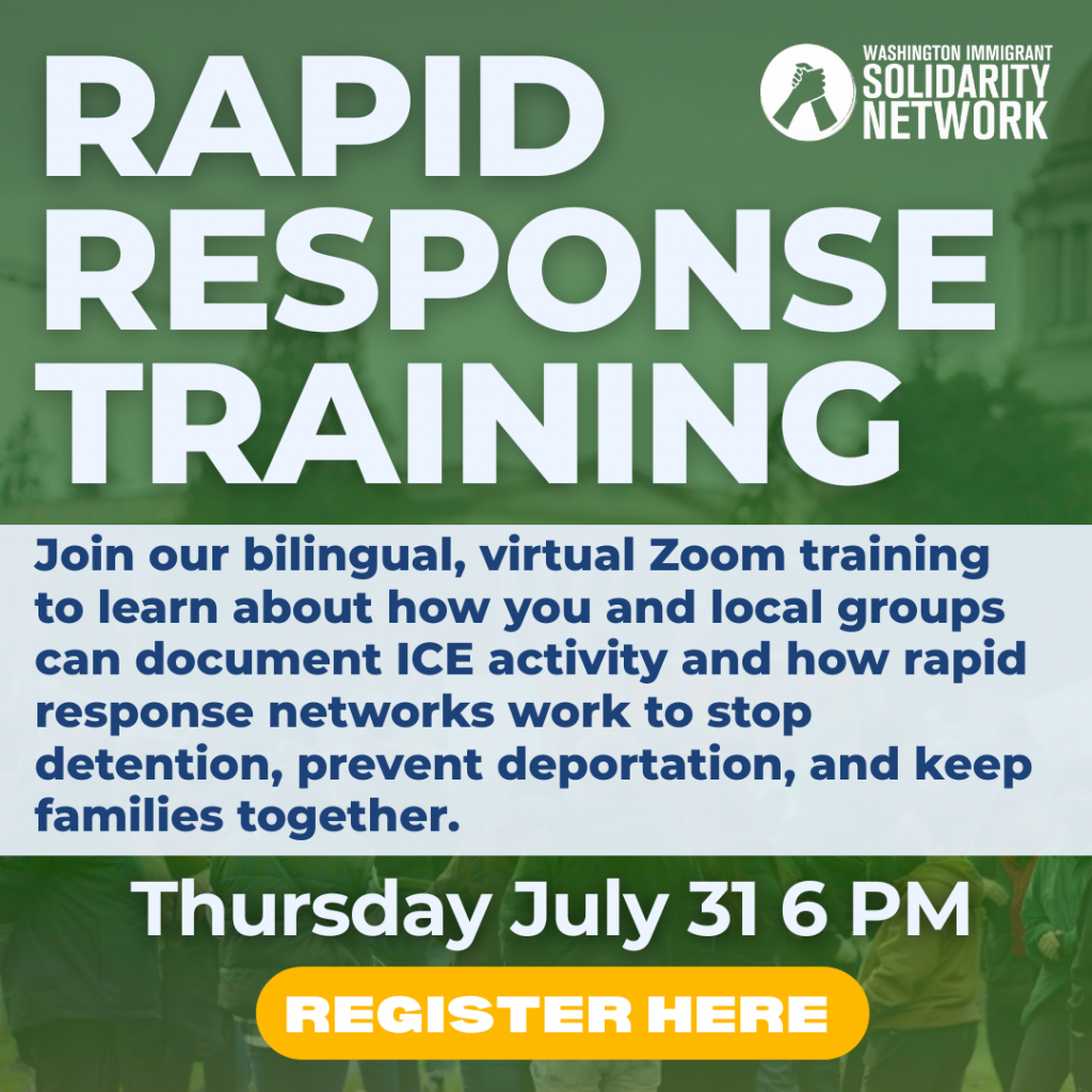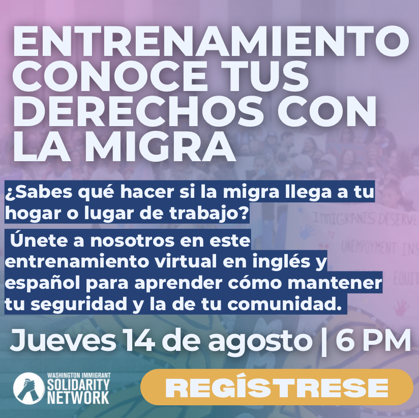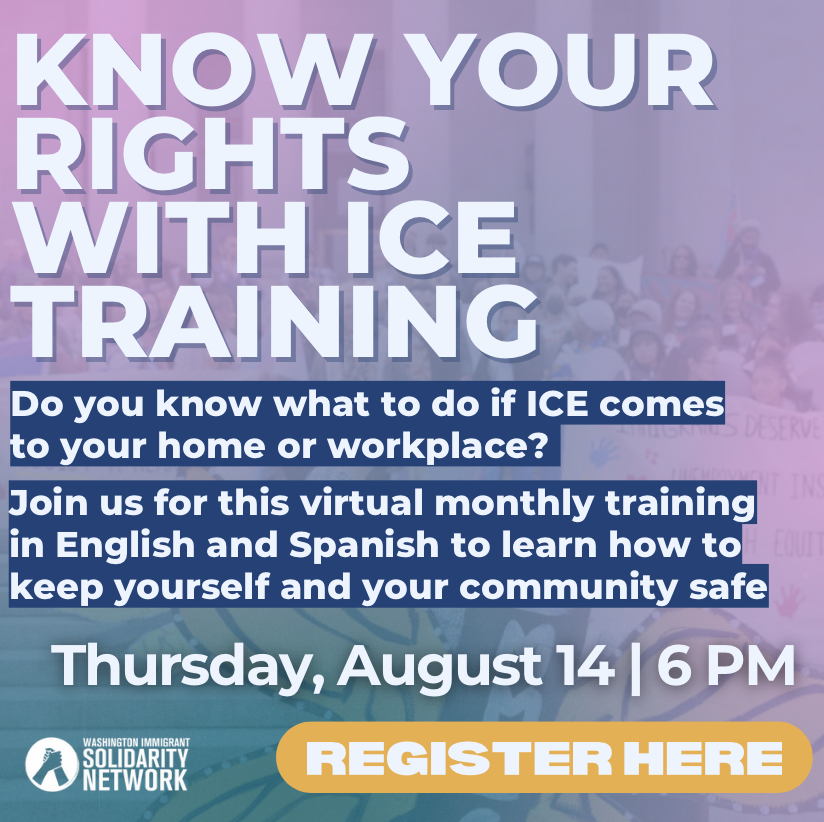 P.S. If you witness immigration activity, raids and detentions in Washington, please call the WAISN Deportation Defense Hotline at 1-844-724-3737. We have operators available Monday through Friday from 6am to 6pm to take your call. Our operators speak Spanish and English, and we have interpretation available in nearly 300 languages.