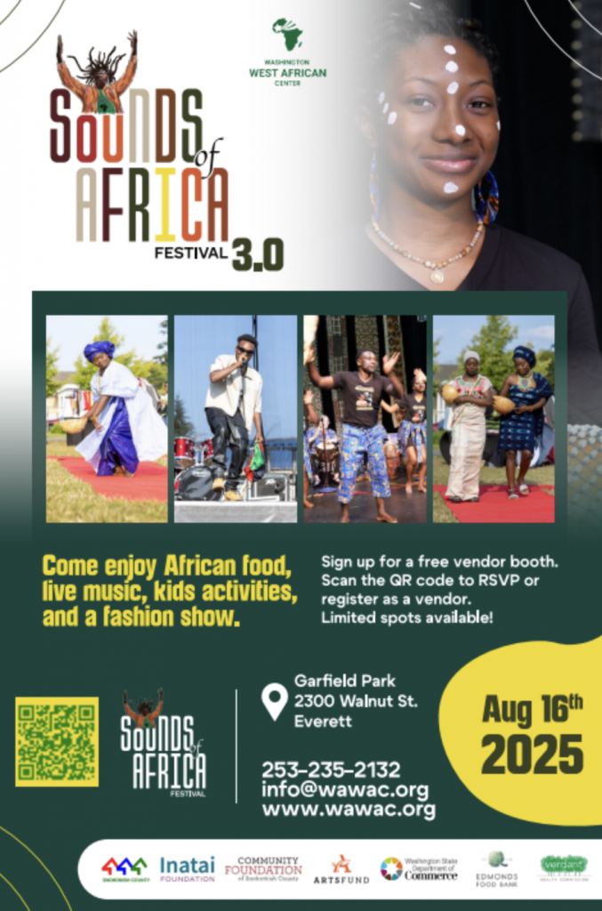 Join the Washington West African Center (WAWAC) at Garfield Park in Everett, WA for a celebration of African culture, music, and community. Register here!