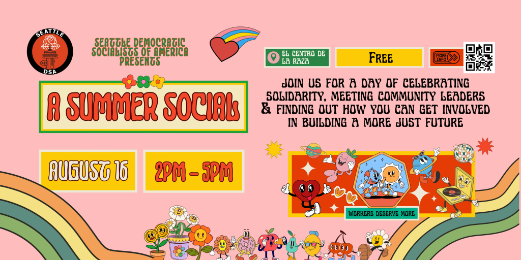 Connect with community and fellow organizers at the Democratic Socialists of America’s Summer Social at El Centro De La Raza in Seattle! Register here!