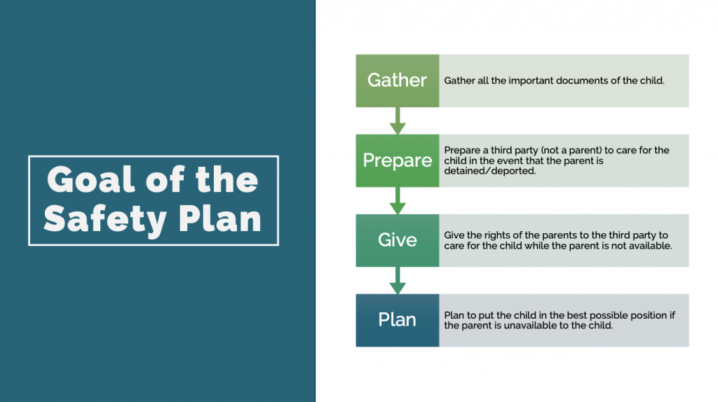 We encourage you to use this resource to ensure that your loved ones know exactly what to do in the event of an ICE raid or immigration enforcement activity in your community. Your family preparedness plan should include: