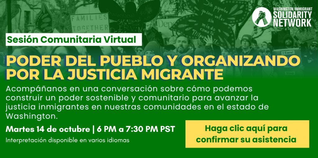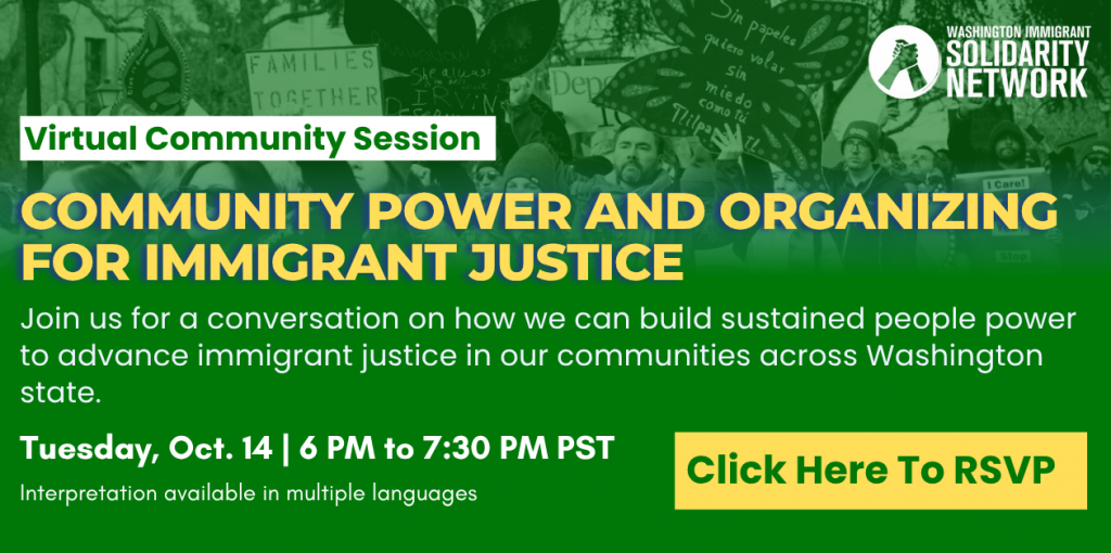 Estamos viviendo un momento en el que estar en comunidad es esencial para nuestro bienestar. Con el propósito de cuidar a nuestra comunidad, esperamos que se unan a nosotros a través de Zoom el próximo martes 14 de octubre para la reunión mensual comunitaria de Política y Abogacía de WAISN.
