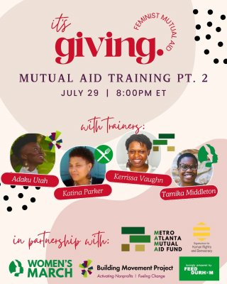 Are you ready for It’s Giving: Feminist Mutual Aid Training Part 2? Join us tomorrow, 7/29 at 8pm ET/5pm PT!
