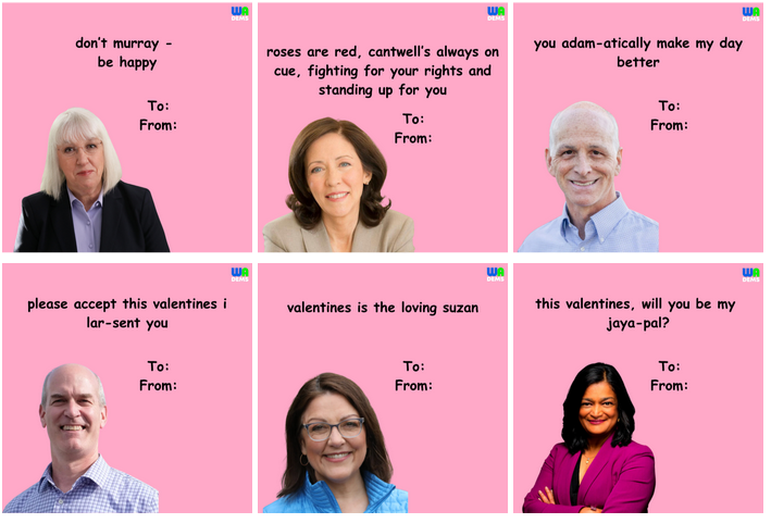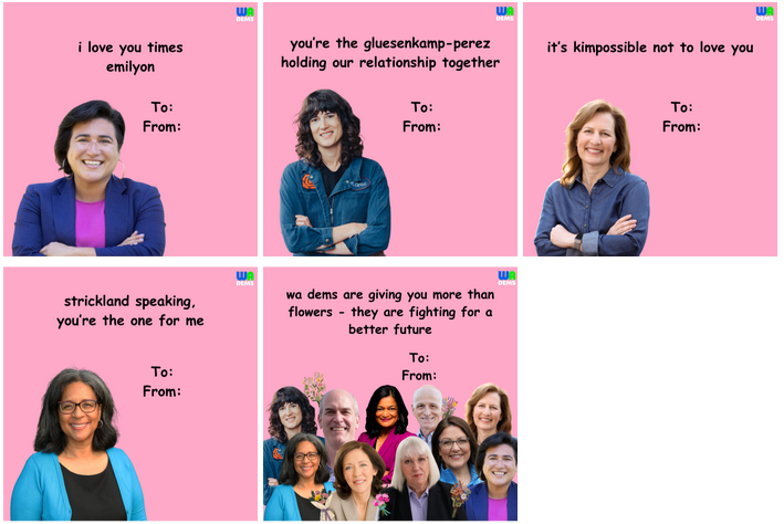 Please enjoy (and share!) these Washington Democrats Valentines Cards our social media team created: