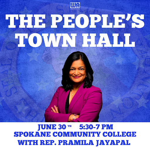 Residents of the 5th Congressional District are invited to join us in Spokane on June 30 at Spokane Community College for a People’s Town Hall with Rep. Pramila Jayapal. We want to hear from you and listen to your stories about how Trump’s extreme agenda has impacted you and your communities. Please join us at The Spokane Community College Lair on Monday, June 30th from 5:30 – 7 PM. Please RSVP HERE to have a guaranteed seat in the auditorium!