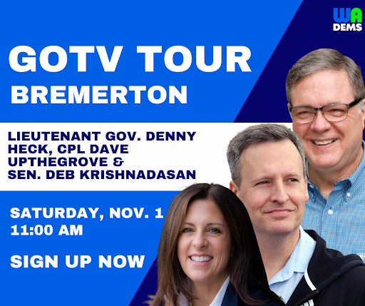 - SATURDAY, 11/1 – Canvass for Senator Deb Krishnadasan w/ the WA Dems, the WSLC, and more in Bremerton at 11 AM. Sign up HERE.